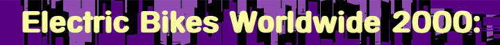 This is the fifth Edition of Electric Bikes Worldwide. Earlier editions reviewed Electric Bikes exhibited at: 1995 Cologne Intercycle Fair for Cycles, 1996 China International Bicycle Exhibition and the Anaheim International Bicycle Exposition. This fifth edition includes contributions from colleagues who attended EB exhibitions at major bicycle shows in China, Germany, Taiwan and the United States in 1999 and 2000 prior to this edition being printed. Motor Technology Overview Motors for EBs continue to evolve from manufacturers designing them specifically for the EB rather than using motors designed for other applications. Hub motors, where the motor is positioned in the wheels hub, is becoming the motor of choice in China. Japanese producers favor direct drive systems with the motor located near the drive sprocket and coupled to it by a gear set. Sanyo is the only Japanese producer to offer hub motors. The rest are all Direct Current (DC) systems and most use powerful Neodymium-Iron-Boron (NdFeB or Rare Earth Magnet REM) type magnets that are 10 times stronger than ceramic magnets. This magnet allows the motor design to be smaller with lower weight than a ceramic magnet motor. Another approach to lighter, more compact motor design is with a brushless AC design, by Rabbit Tool U.S.A. Hub motors are found on E-Bikes and direct drive motors are generally found on Pedelecs. The Pedelec incorporates a sensor that detects the initial pedal action of the rider, this engages the motor with motor effort and pedal effort designed to be equal. Motor power is applied up to a top speed of 15 to 20 kph, then it is reduced to zero at a higher speed which results from strong pedaling. This limits the top motor powered speed of the Pedelec to what regulations require. Japan and Europe have similar regulations for Pedelecs. Pedelec motors in Japan are rated at 200-250W while hub motors on China E-Bikes are at 100-200W. United States E-Bikes have motors rated at 400W for higher top speed (20 mph vs. 12 mph or 33 kph vs 20 kph) and better acceleration performance. U.S. Motor Companies Rabbit Tool U.S.A., of Rock Island, Illinois, exhibited a newly patented hub motor at the 1999 CABDA show and the 2000 Future Car Congress in Washington, DC. This 24V, 3-Phase AC, 95% efficient brushless hub motor-generator has throttle controlled regenerative braking fully as efficient as the motor drive. Digital controlled and powered by 9Ah rechargeable (2 hours standard) NiMH D-cell batteries, it is rated at 250W. The DC battery voltage is converted by a DC to AC converter integrated into the motor controller. Weighing only 2.5 kg (5.5 lbs) with a maximum diameter of 9.9 cm (4.5 inch), it is oil cooled and quiet. Its high speed NdFeb permanent magnet motor is internally gear reduced 11:1 for high torque-low speed of the wheel. Fitting a standard 130 mm wide mountain bike frame with a single speed freewheel, this modular wheel system has a list price of about $500, including battery and controller, and is available now. (Figure 8.7 and 8.8) |